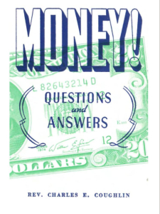 “Money! Questions and Answers” is perhaps the most important book by the late radio priest Father Charles E. Coughlin (1891-1979), as it’s apparently the only book with his byline that isn’t a compilation of his radio speeches and sermons.