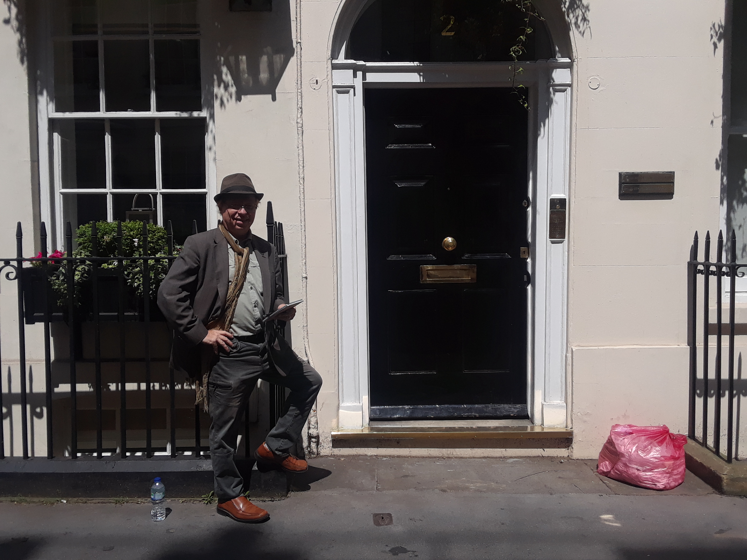 PHOTO CREDIT: Your writer stands outside the London office of the Bilderberg Association, a UK-registered “charity,” in 2018. No one would answer the door.
